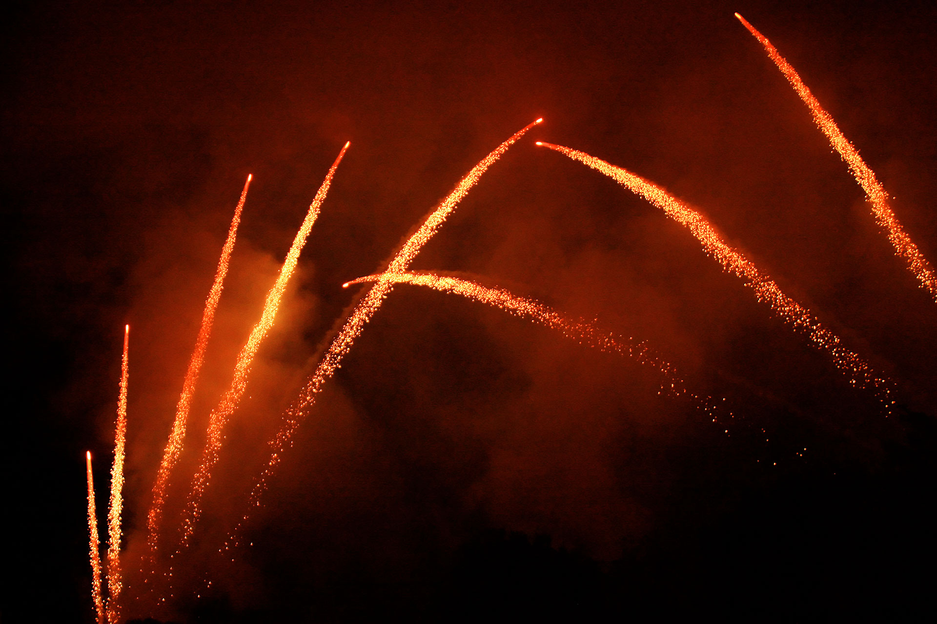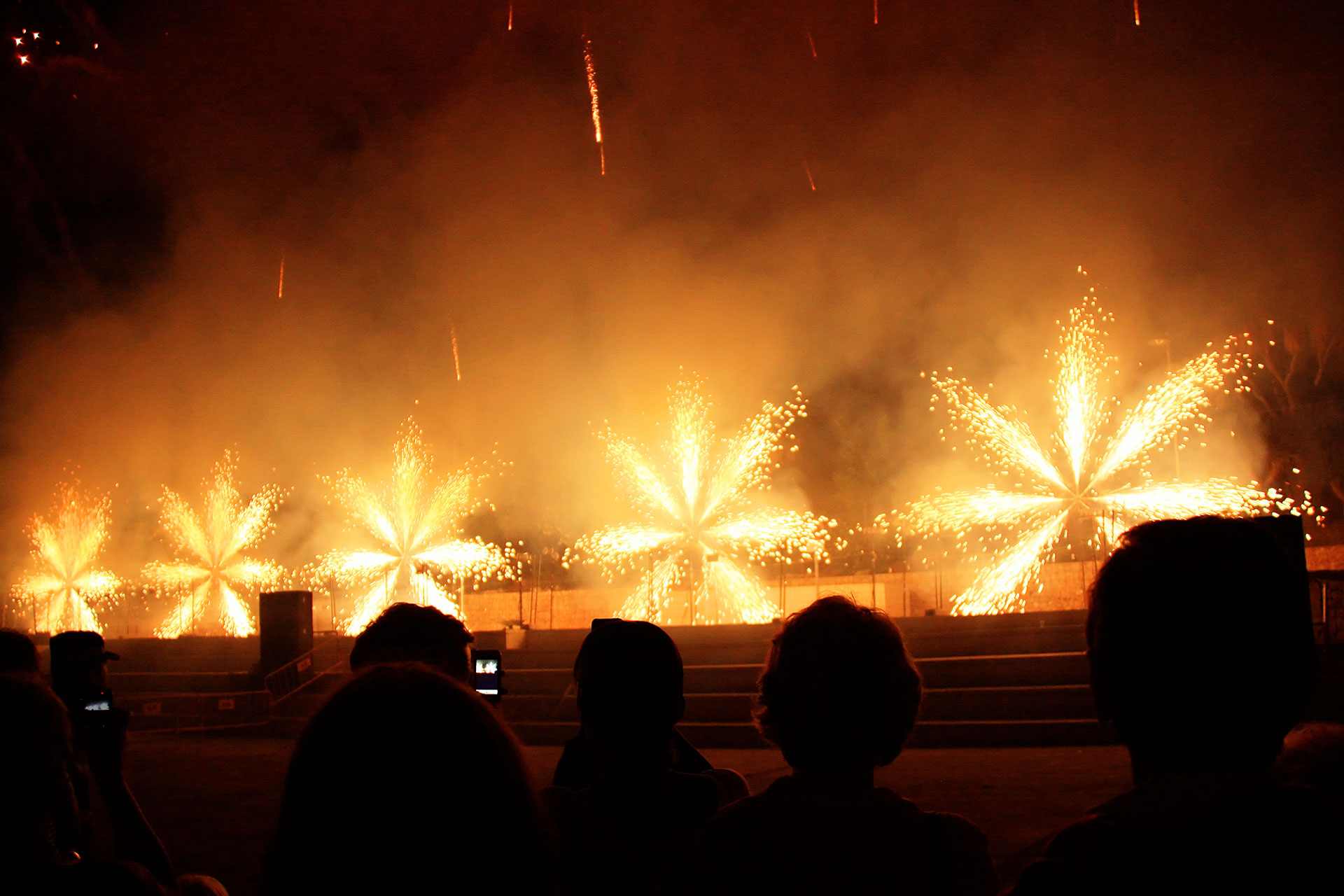 above the town square, huge explosions and burning gunpowder assault the senses of the large crowd gathered beneath.For an hour we stand, trasfixed skywards, enveloped in the passion of thunderous orchestral music that's battling for space in the cacophony.